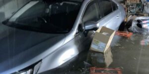 満足できる滑りもでき帰ろうと思って、ロープウェイ乗り場横で汚れた板を洗おうとホースの順番を待っていました。